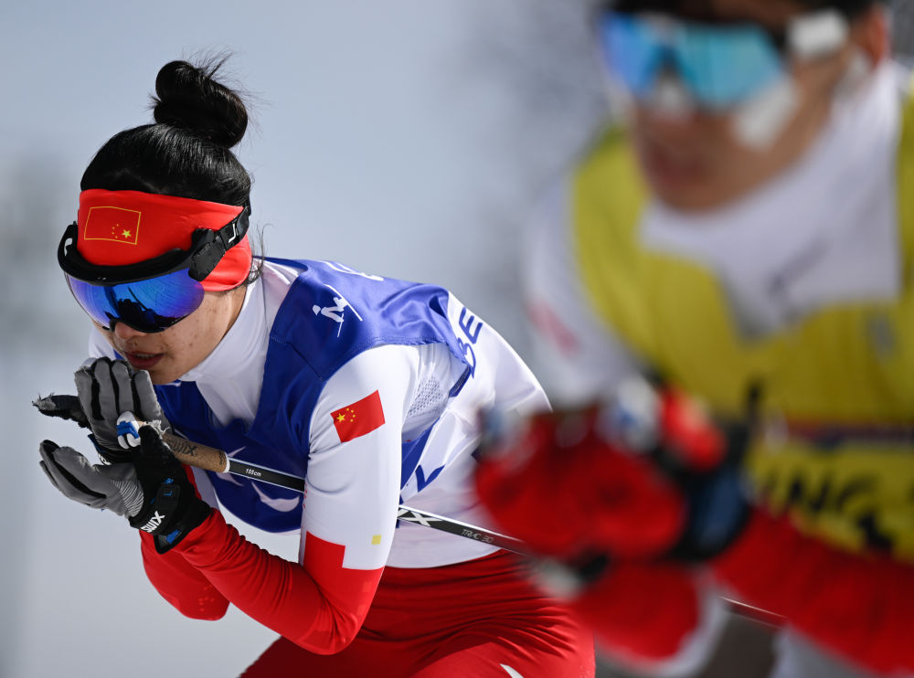 中国选手王跃在北京冬残奥会残奥越野滑雪女子中距离自由技术(视障)决赛中。她说:“我看不清世界,但我想让世界看到我。”