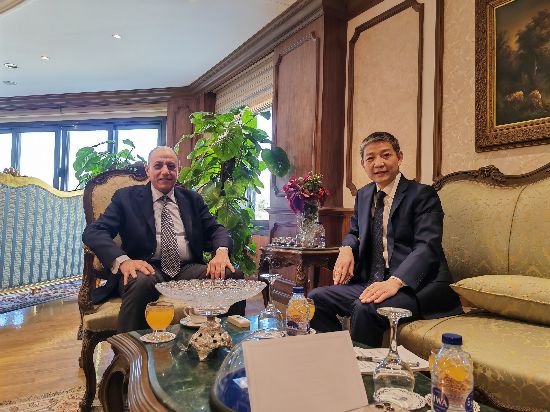 1月12日,中国驻埃及大使廖力强会见埃及民航部长阿巴斯,就加强两国在民航和旅游等领域合作深入交换意见。阿巴斯表示欢迎中国游客来埃及,祝愿中国人民兔年新春快乐!