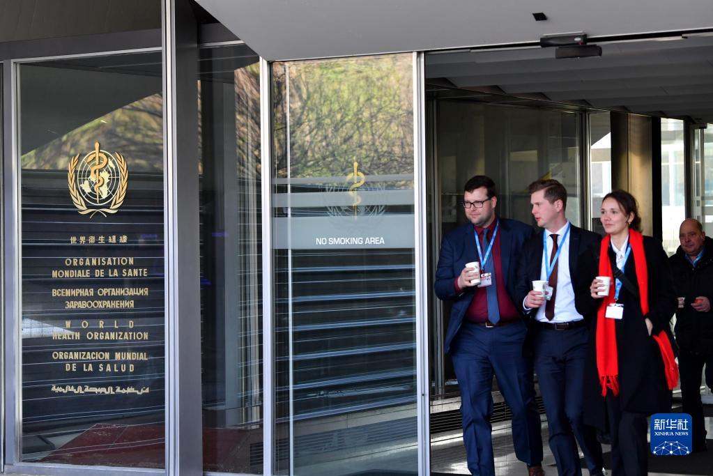 1月30日,在瑞士日内瓦,工作人员走出世界卫生组织总部大楼。新华社记者 连漪 摄