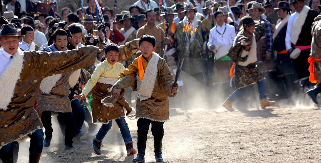 从尖藏村出发,沿山路蜿蜒向下,当汽车行驶至半山腰,黄河干流李家峡河谷尽收眼底。河谷沿岸的不少村落正在比赛传统射箭,热闹的欢呼声此起彼伏。
