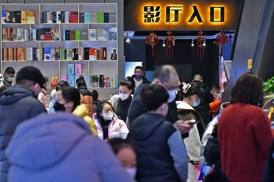 1月26日,山东烟台福山区万科广场,市民在一影城观影。视觉中国供图