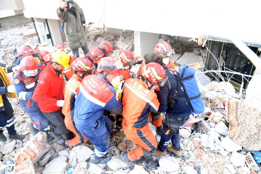 2月14日,中国救援队与中国香港特区救援队联合编组在土耳其哈塔伊省安塔基亚市开展救援工作。