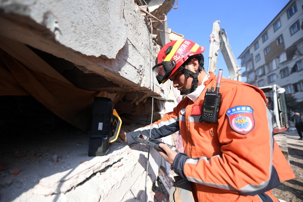 中国救援队自8日到达当地灾区后,按照土方给出的范围,到地震重灾区哈塔伊省执行搜救任务。在搜索中,救援队努力搜索生命迹象,不放弃一丝希望。