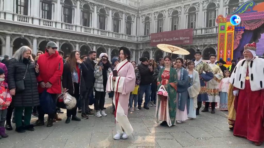 2月17日,在威尼斯狂欢节的一场活动中,中国传统服饰首次亮相。