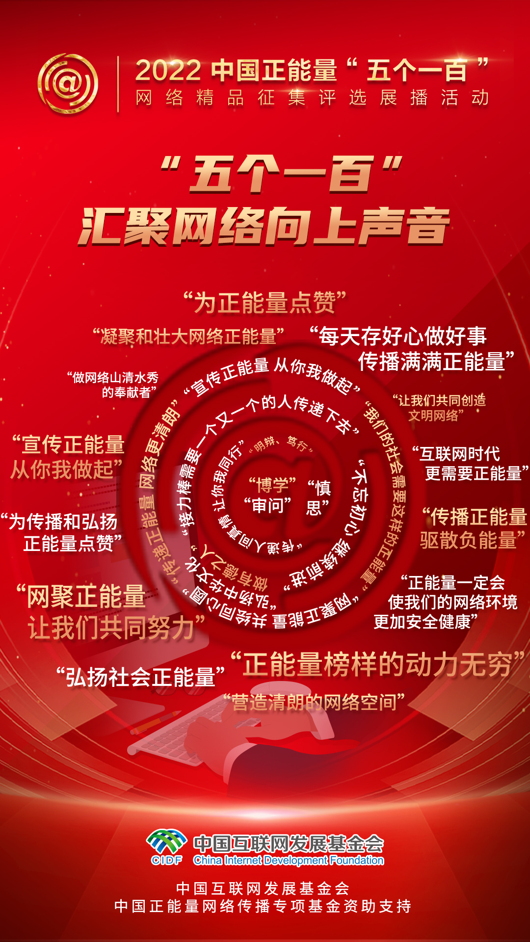 通过点滴的正能量讴歌伟大时代,在激荡并温暖广大网民心弦的同时,激励更多人主动参与到“团结奋进新征程 同心奋斗创伟业”的大潮中。2022中国正能量“五个一百”网络精品征集评选展播活动正在进行时。