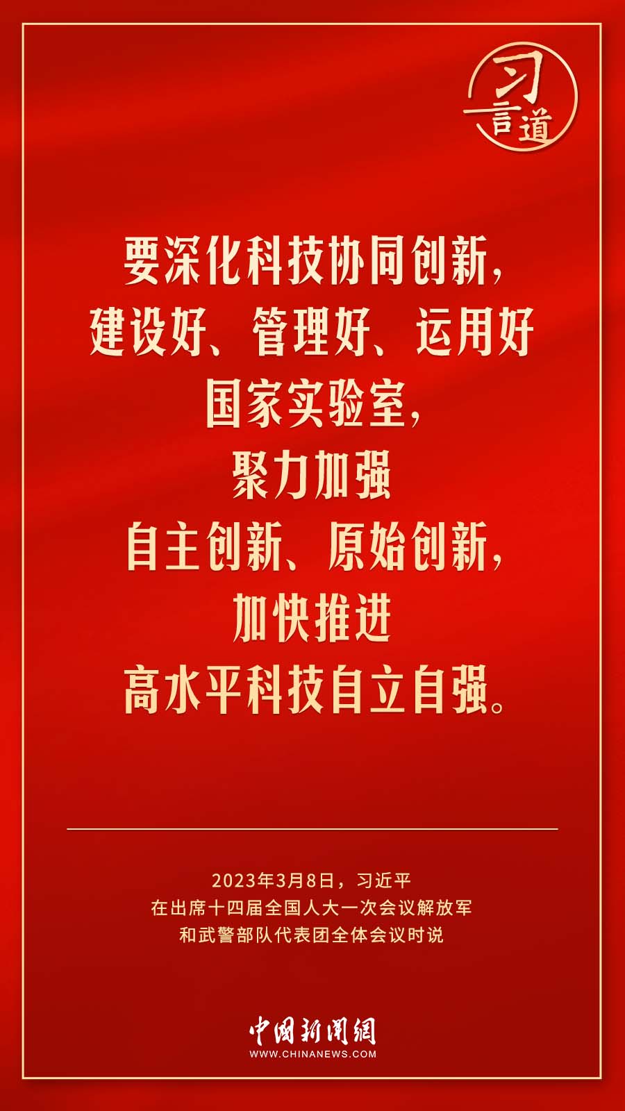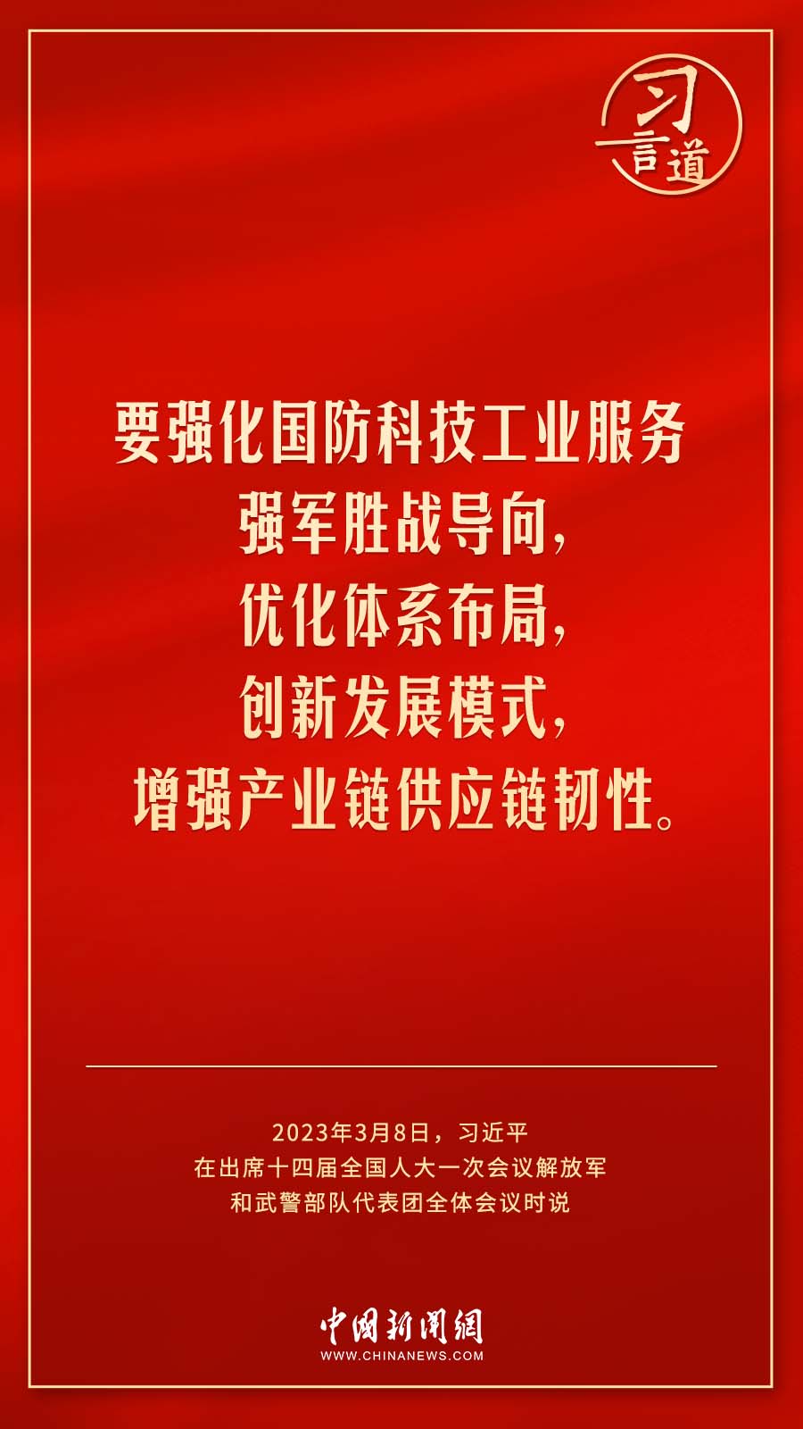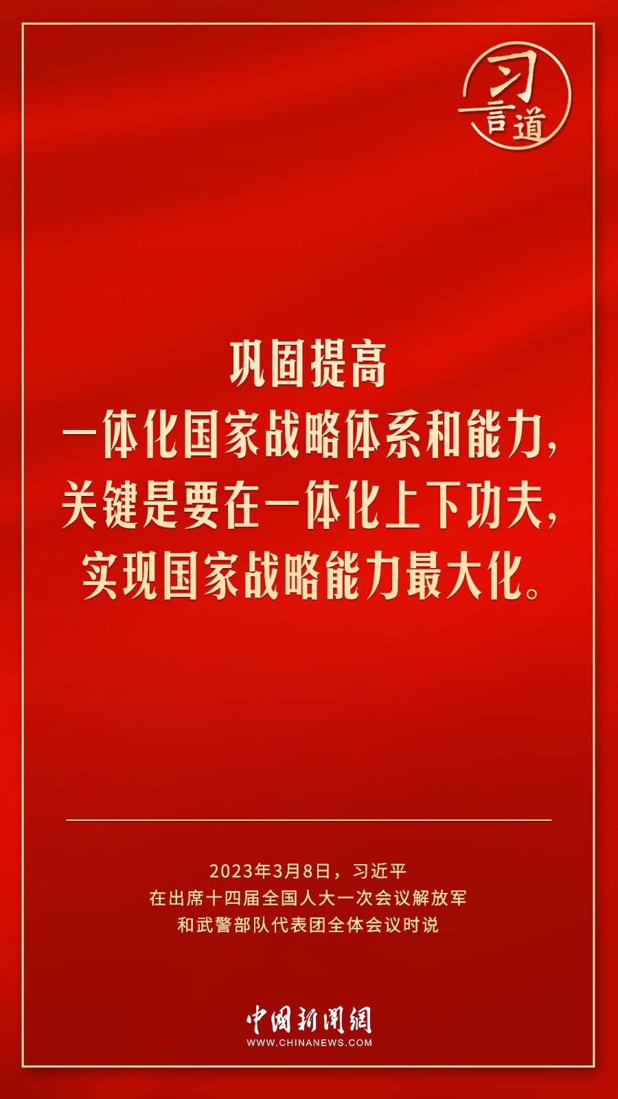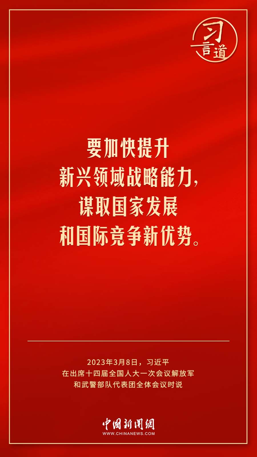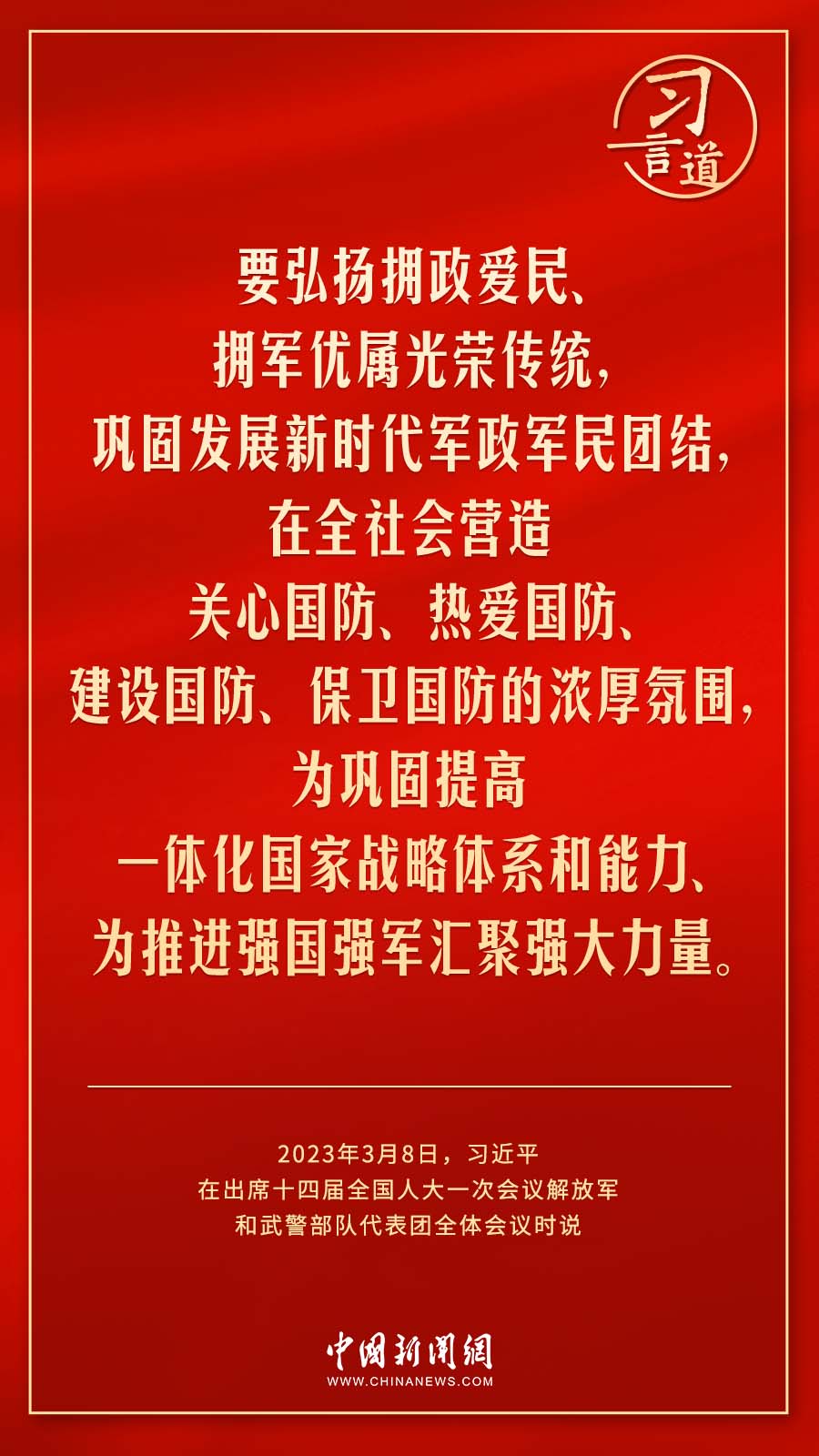 中共中央总书记、国家主席、中央军委主席习近平8日下午在出席十四届全国人大一次会议解放军和武警部队代表团全体会议时说——
