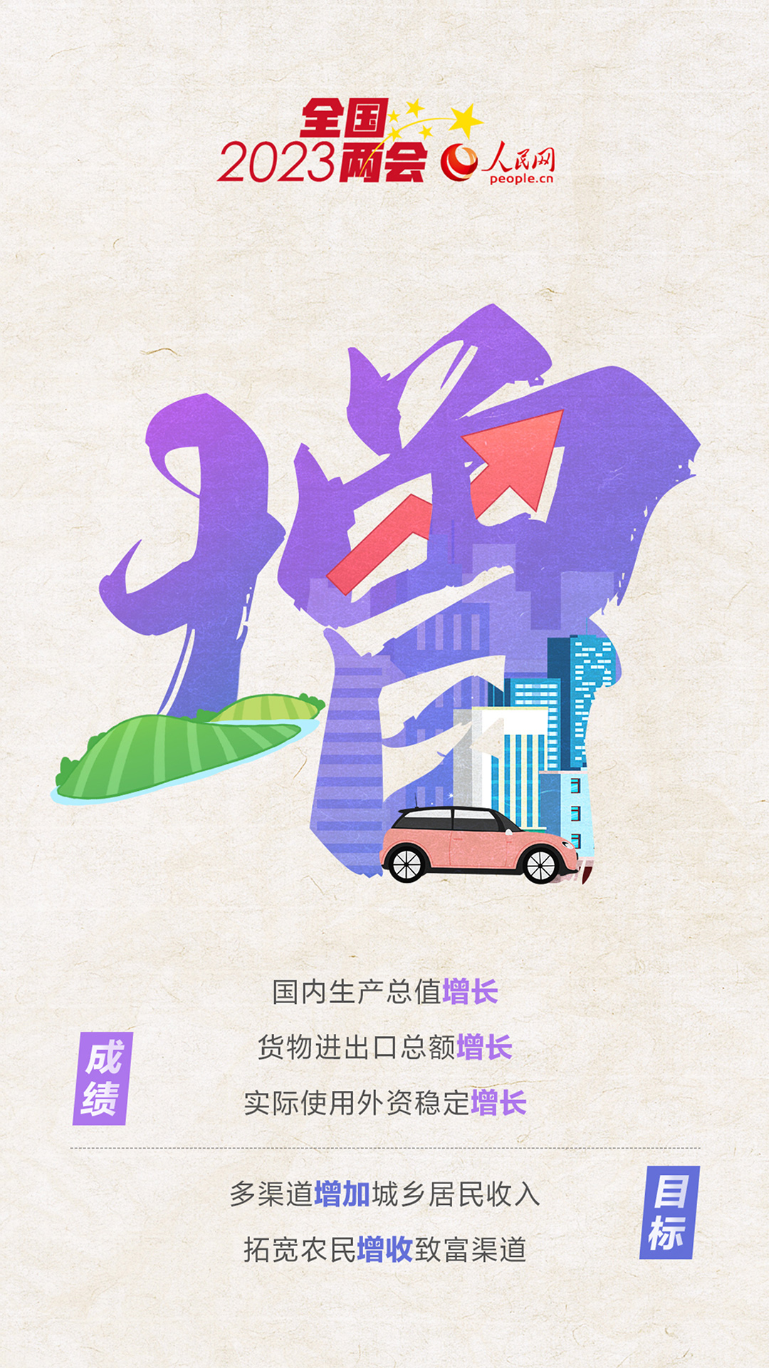 国内生产总值增长5%左右,城镇新增就业1200万人左右,多渠道增加城乡居民收入,拓宽农民增收致富渠道……这些“增”字与你有关。