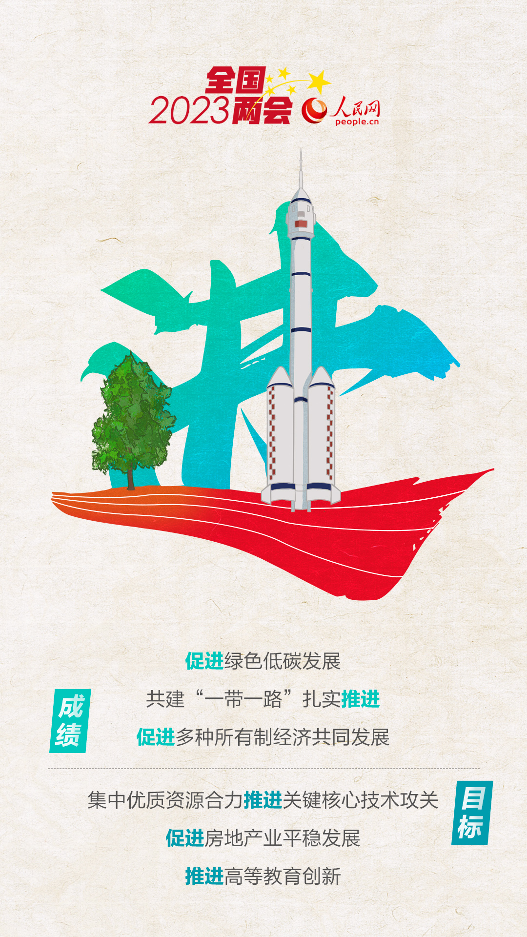 新的起点、新的征程、新的出发。2023年是全面贯彻落实党的二十大精神开局之年。作为全国人民共商国是、共谋发展的重要平台,2023年全国两会擘画出高质量发展的美丽蓝图,凝聚起建设中国式现代化的磅礴力量。7个关键字,带你领略——