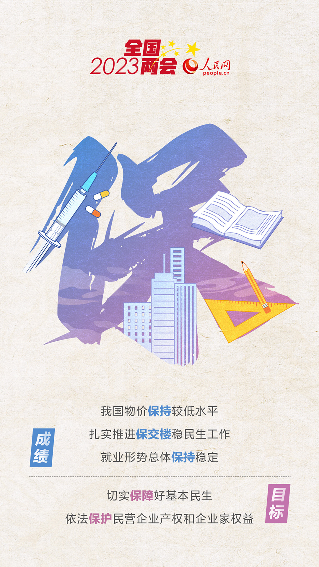 粮食产量保持在1.3万亿斤以上,切实保障群众就医用药需求,依法保护民营企业产权和企业家权益,加强养老服务保障……这些“保”字与你有关。