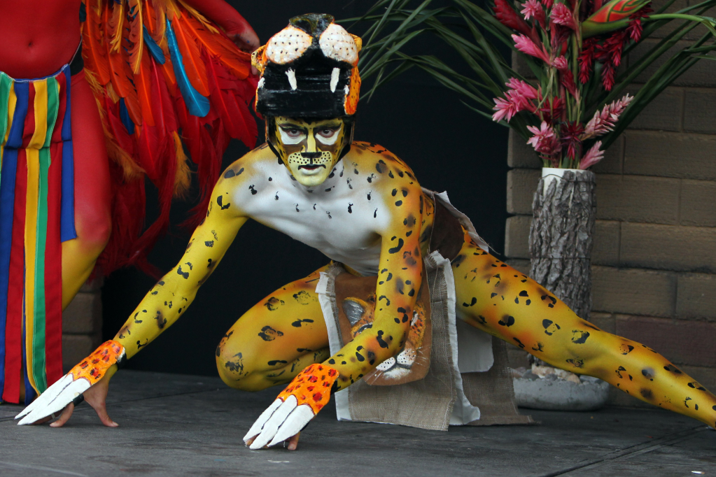 2012年12月20日,在洪都拉斯科潘的一个考古遗址公园,一名演员在迎接玛雅新纪元活动中表演。新华社发(拉斐尔·奥乔亚摄)