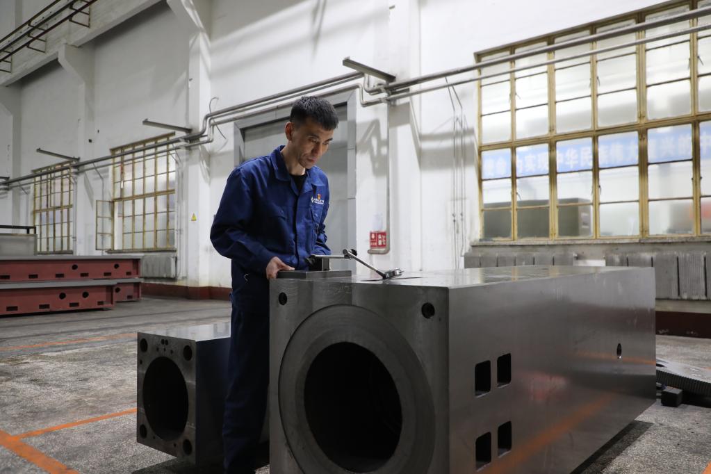 在中国通用技术齐齐哈尔二机床有限责任公司,“喊破嗓子,不如做出样子”的标语格外醒目。“五一”国际劳动节期间,“马恒昌小组”所在的配套分厂精密车间内机声隆隆,各个工位有条不紊,井然有序,在工人们的熟练操作下,一个个硕大的工件正被生产、加工、组装。