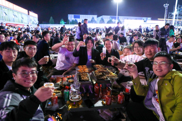 4月29日,游客在淄博市一家烧烤城吃烧烤。新华社发(朱伟摄)