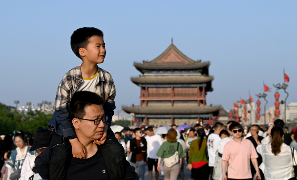 4月30日,游客在西安城墙景区参观游览。新华社记者 刘潇 摄