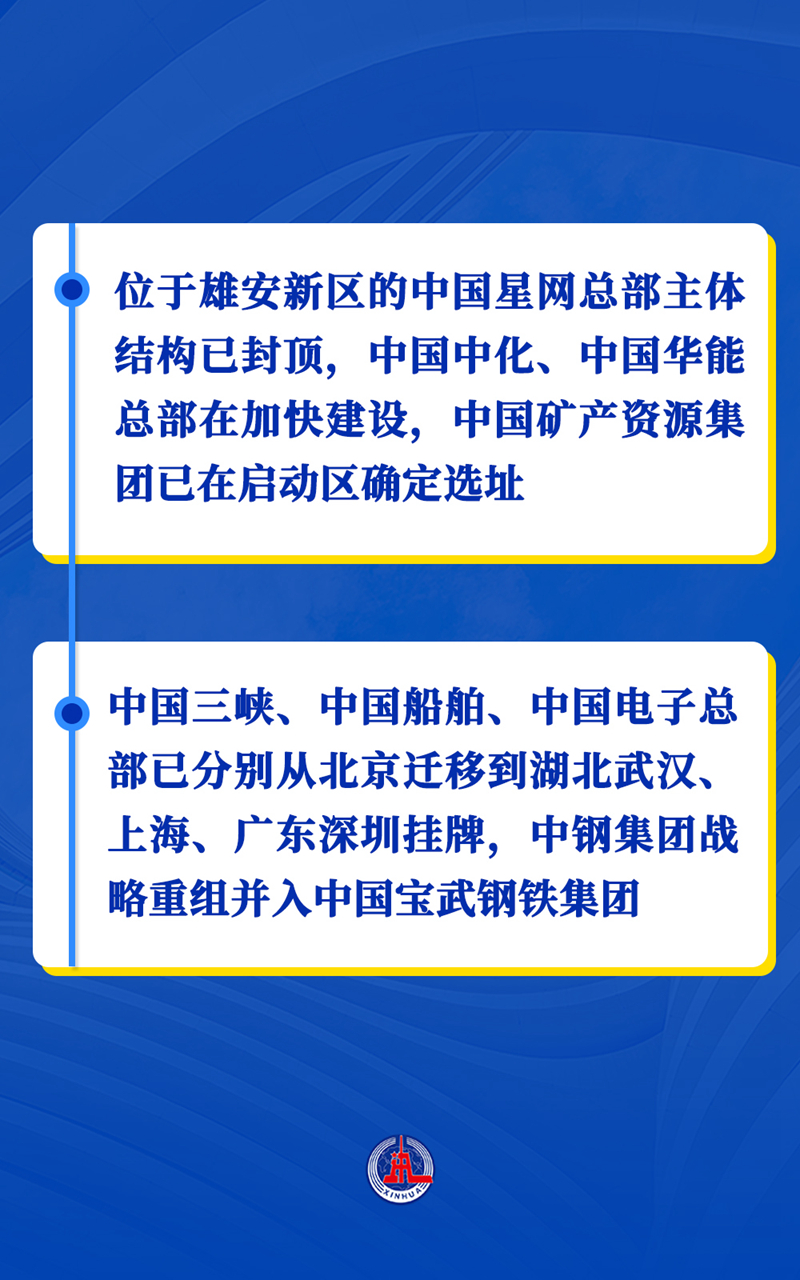 一批重大疏解项目正在陆续落地。截至目前,已推动8家央企总部迁出北京并在雄安新区等京外地区落户建设,首批4所高校、2家医院等标志性疏解项目在雄安新区确定选址。