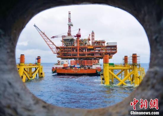 中国海油深圳分公司超1.5万吨“恩平20—4”海上钻采平台上部组块与导管架对接成功,创造了中国海上油气平台动力定位浮托安装重量的新纪录。