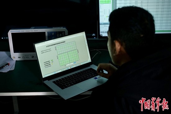 4月22日,四川稻城,一位年轻的科研人员正在查看水切伦科夫探测器阵列的实时运行状态。中青报·中青网记者 李强/摄