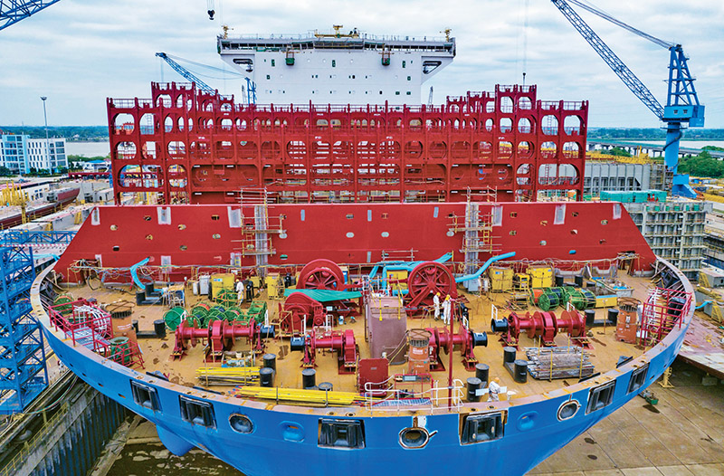 主题教育开展以来,各地区各部门坚持以习近平新时代中国特色社会主义思想为指导,以强化理论学习指导发展实践,以深化调查研究推动解决发展难题,把学习和调研落实到完成党的二十大部署的各项任务中去,形成推动高质量发展的强大动力。图为2023年5月7日,江苏扬州中远海运重工有限公司开足马力抓生产(无人机照片)。 新华社发 周社根/摄
