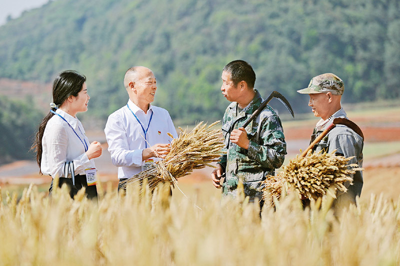 主题教育开展以来,全党上下大兴调查研究之风。云南省曲靖市师宗县纪委监委紧盯乡村振兴领域突出问题,下沉监督力量,组织纪检监察干部到田间地头与群众拉家常、听民声,用实际行动为群众办实事、解难题。图为2023年4月21日,师宗县纪检监察干部在漾月街道洽足村和群众交流,了解相关情况。 人民图片 王勇/摄