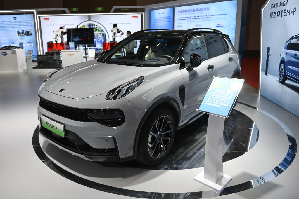 5月16日在宁波举行的第三届中国—中东欧国家博览会中东欧展馆浙江展区拍摄的一款出口欧洲的领克汽车。新华社记者黄宗治摄