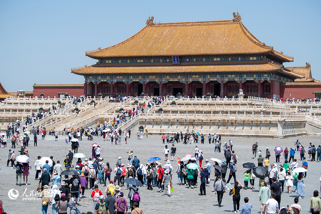 5月18日一早,北京故宫迎来大批游客,太和殿广场人头攒动。人民网记者 翁奇羽摄