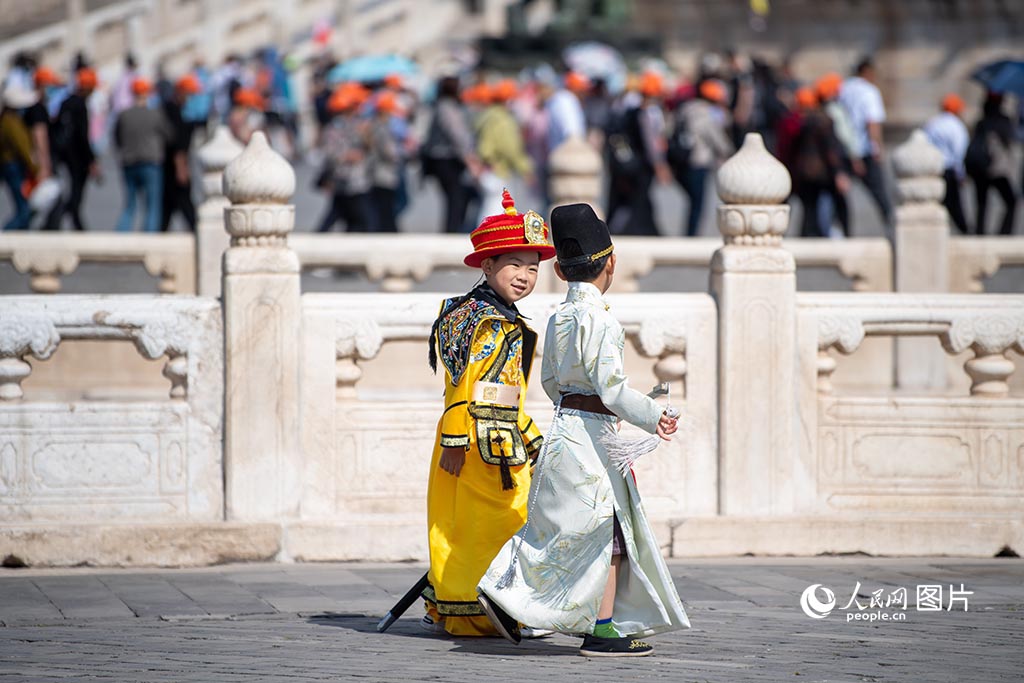 5月18日,两位身着古装的小孩正在故宫游览。人民网记者 翁奇羽摄