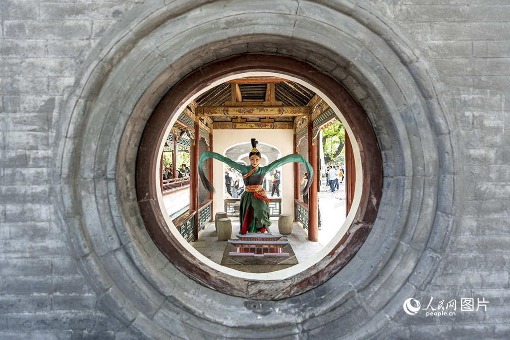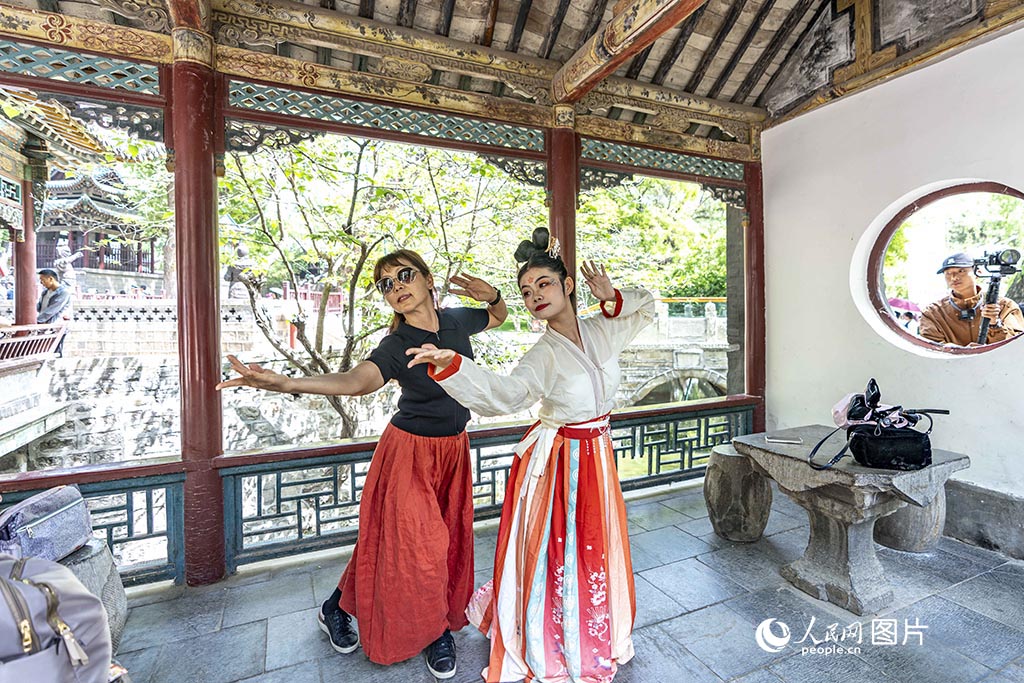 5月18日,在山西太原晋祠博物馆内随处可见的汉服游园表演。人民网 卢鹏宇摄