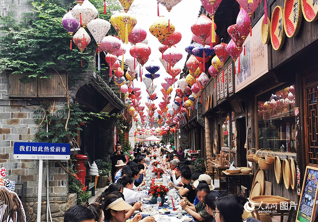 5月19日,宁波市宁海县前童古镇豆腐节长桌宴,吸引八方来客。人民网 章勇涛摄