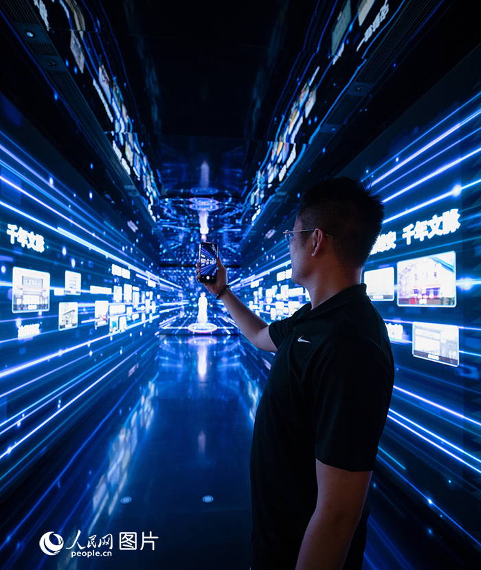 中国旅游日前夕,游客在雄安印象展馆内参观体验。人民网 李兆民摄