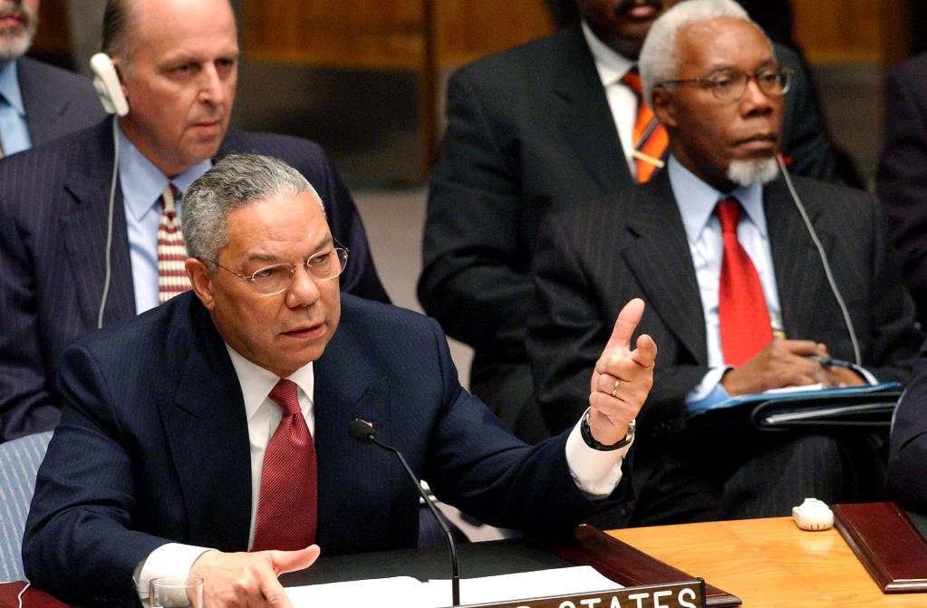 2003年2月5日,时任美国国务卿鲍威尔在联合国安理会公开会议上通报所谓有关伊拉克藏匿大规模杀伤性武器的证据。一个多月后,美国及其盟友不顾国际社会强烈反对,绕过安理会,以莫须有罪名发动伊拉克战争。鲍威尔此后曾公开承认这次发言为自己的“污点”。新华社记者彭张青摄