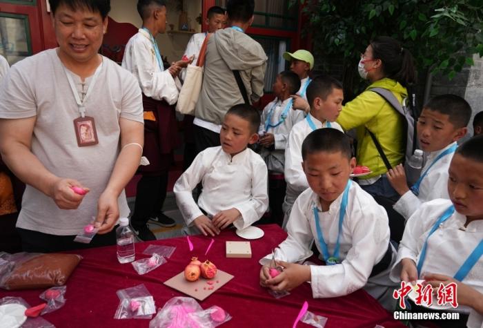 6月1日下午,孩子们来到了位于北京蒙藏学校旧址的中华民族共同体体验馆。蒙藏学校是近代第一所少数民族专门学校。在中华工艺美术体验空间,孩子们跟着老师一起捏“石榴”;观看演出时,孩子们与前来参加演出的民族艺术家们一起载歌载舞。