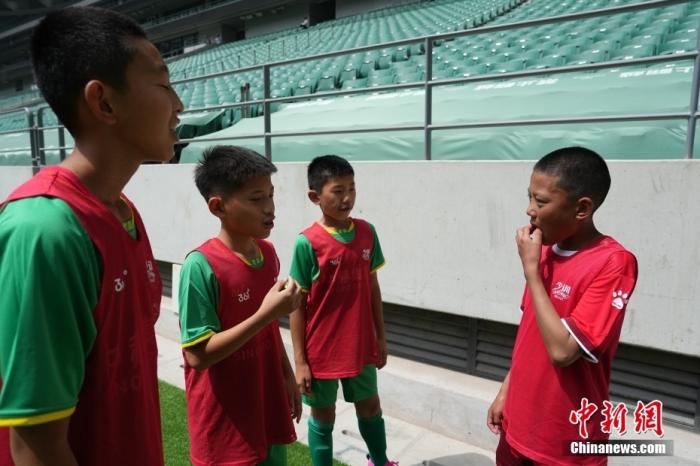 这是孩子们第一次在大型体育场上踢球。教练东周文德说,来北京前,孩子们问他,“C罗踢球的那种球场在哪?”“工体里面的草都是真草吗?”