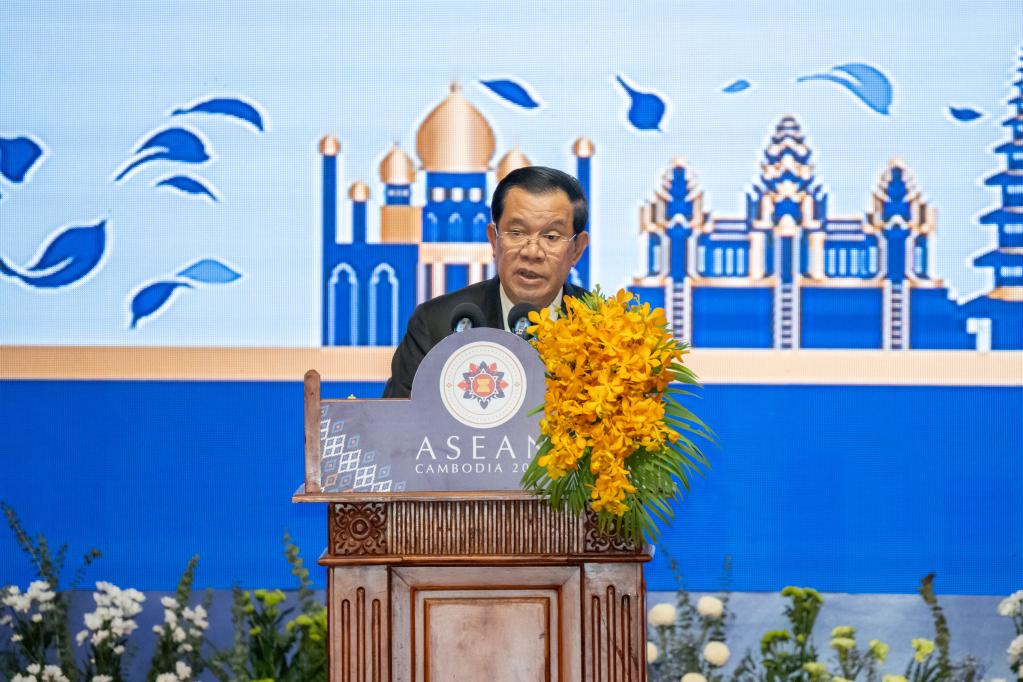 图为2022年11月13日在柬埔寨首都金边拍摄的柬埔寨首相洪森出席东盟峰会的资料照片。新华社记者朱炜摄