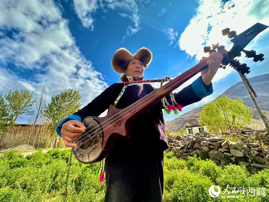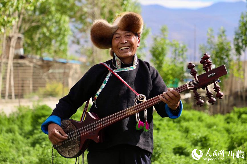 传承人罗布次旦在弹奏扎念琴。人民网记者 次仁罗布摄