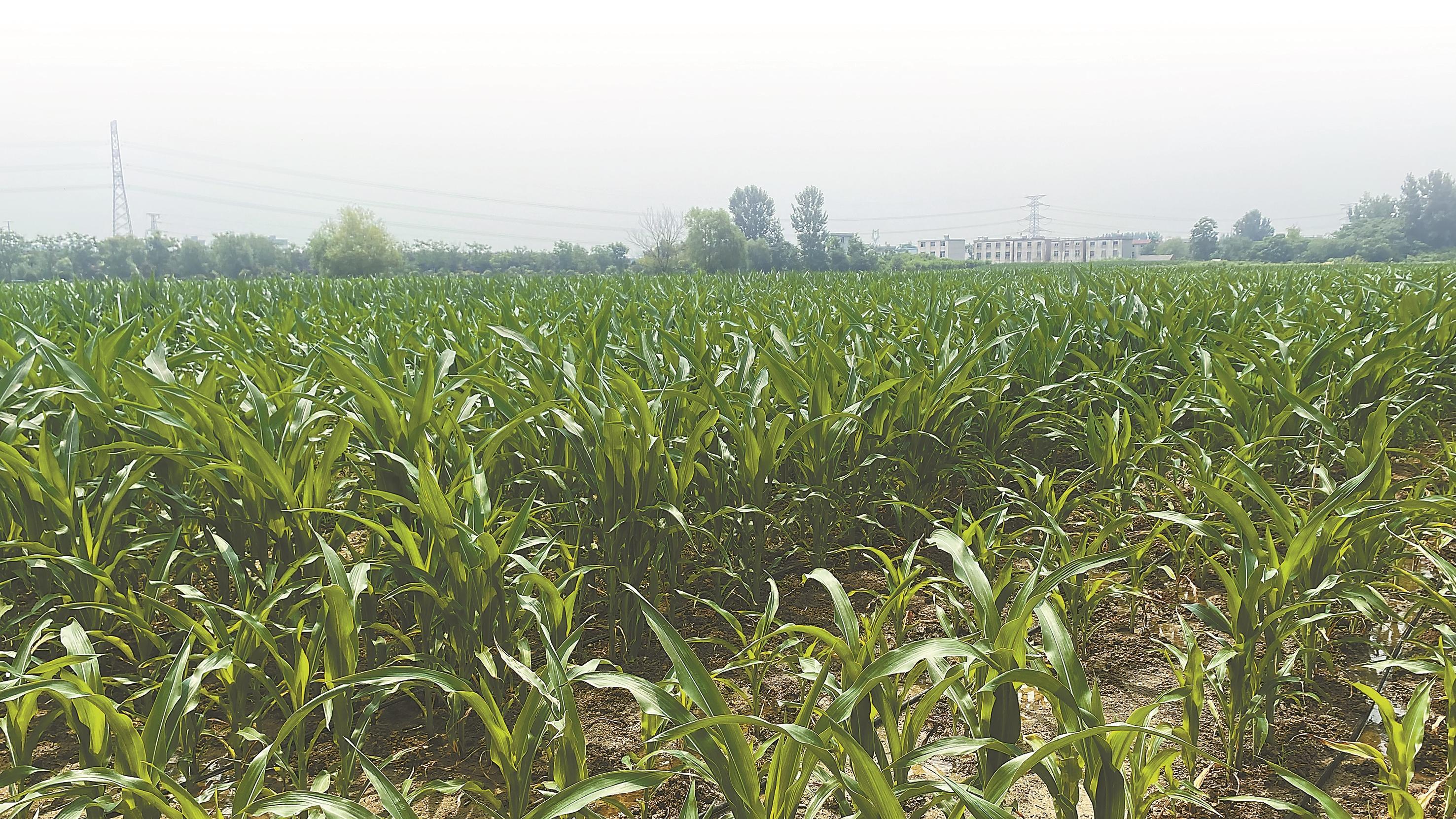 6月13日,在阜阳市颍州区西湖镇梳妆村的农田里,玉米已有半人多高,叶片翠绿,植株健壮。本报记者 许昊杰 摄