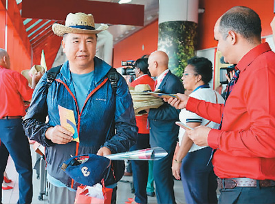 在古巴哈瓦那,乘坐国航北京—马德里—哈瓦那直飞航班的旅客近日抵达何塞·马蒂国际机场。