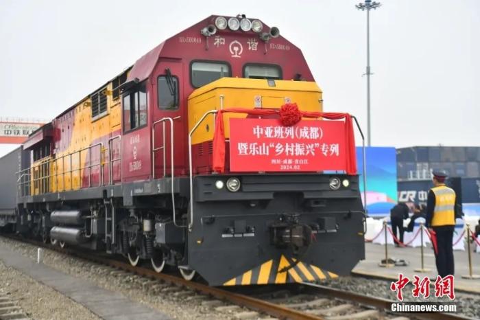 2024年2月6日,一辆装载55个集装箱的茶叶专列驶出四川成都国际铁路港。中新社记者 张浪 摄