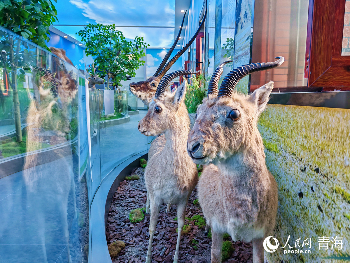青藏高原野生动植物标本科普馆里的普氏原羚标本。人民网记者 杨启红摄