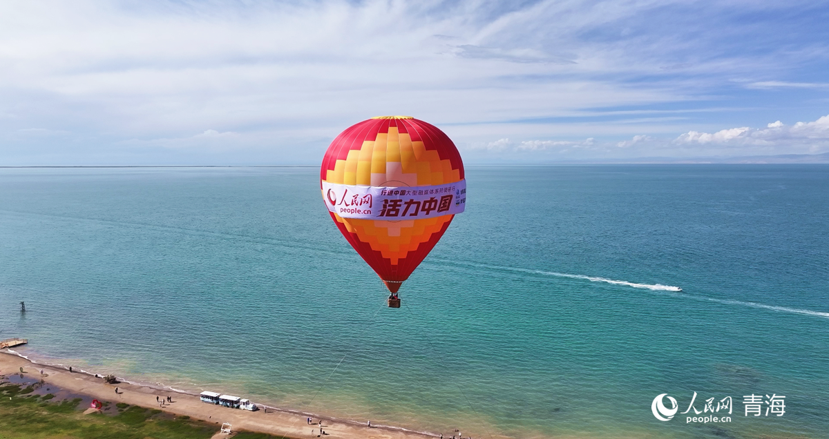 青海湖景区新增的热气球体验项目。人民网记者 马天翼摄