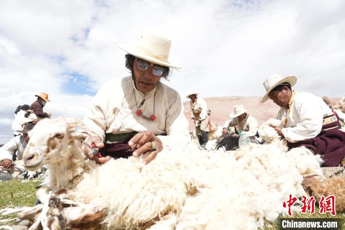 中新网拉萨7月18日电 (索朗仁青)近日,西藏阿里地区改则县进入了繁忙的剪羊毛季节。牧民们聚在一起,用剪刀为羊群脱掉毛绒“大衣”。剪羊毛不仅是一项传统习俗,更是牧民们生活中不可或缺的一部分。