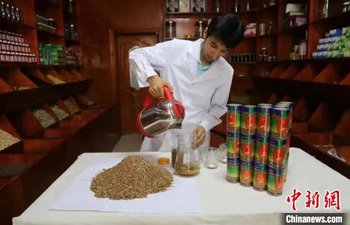 和田药茶制作技艺传承人买提卡斯木·芒里克正在泡制药茶。(资料图)受访者供图