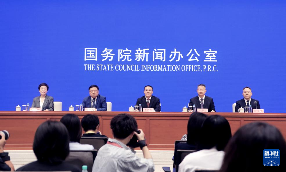 7月31日,国务院新闻办公室在北京举行“推动高质量发展”系列主题新闻发布会,财政部副部长王东伟、财政部综合司司长林泽昌、预算司司长王建凡、经济建设司司长符金陵出席介绍情况,并答记者问。新华社记者 潘旭 摄