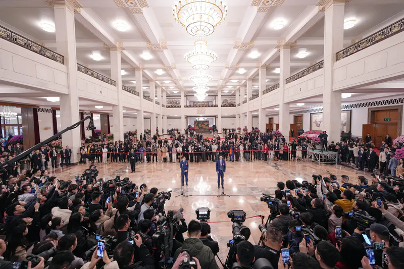 就在前一天下午,全国政协十四届三次会议已在此拉开帷幕,2100多名全国政协委员齐聚一堂、共商国是。今天,他们也列席十四届全国人大三次会议。