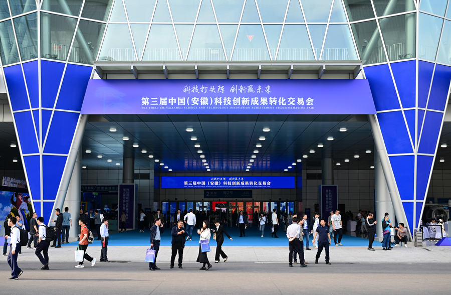 4月26日,观众在第三届中国(安徽)科技创新成果转化交易会上参观。新华社记者 周牧 摄