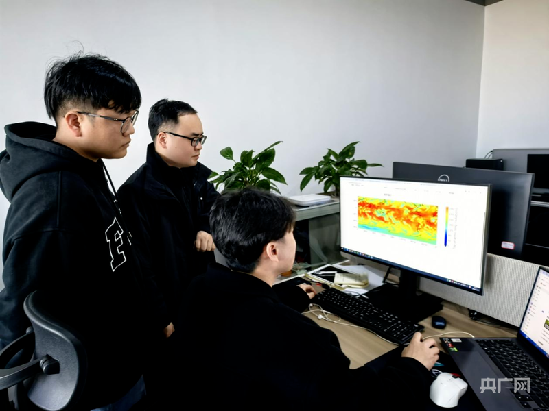 临境气象研发团队在查看气象预测结果(央广网发 科大硅谷供图)