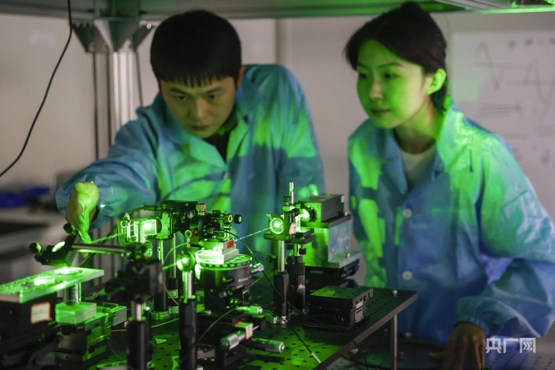 科大硅谷片区国盛量子科技有限公司实验室内,技术研发人员在调试量子金刚石探针扫描仪(央广网发 科大硅谷供图)