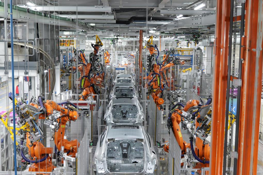 这是2月27日在德国慕尼黑拍摄的宝马集团工厂内的流水线。新华社记者邰思聪摄