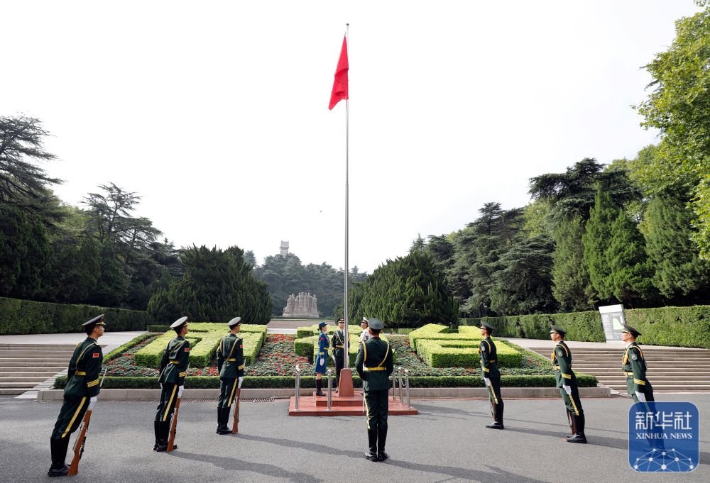 ↑ 10月1日,南京雨花台烈士陵园举行升旗仪式。新华社发(丁亮摄)