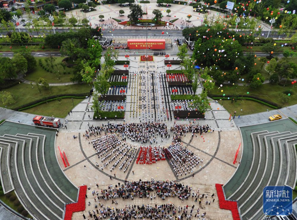 ↑ 10月1日在四川省达州市人民广场拍摄的升旗仪式。新华社发(邓良奎摄)