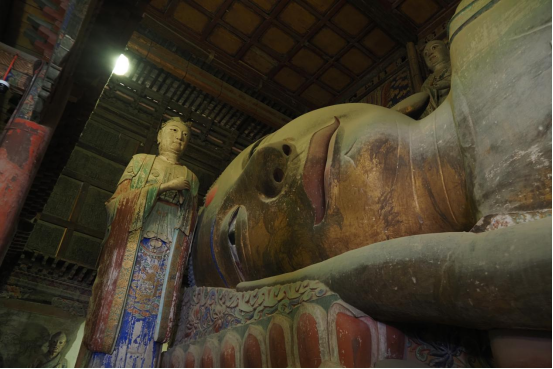 谈及大佛相关文物的保护现状,张掖大佛寺文物研究所讲解员陶文恺介绍:“作为全国重点文物保护单位,张掖大佛寺的安防、消防设施工程已全部完成。同时,我们与甘肃省图书馆合作设立纸质文物修复传习点,配套建成古籍修复工作室,专门开展纸质文物与古籍的修复工作;自前年起,文物数字化工作也在持续推进,未来计划开放数字陈列厅,借助科技力量让更多人跨越时空,‘走近’壁画与文物背后的故事。”