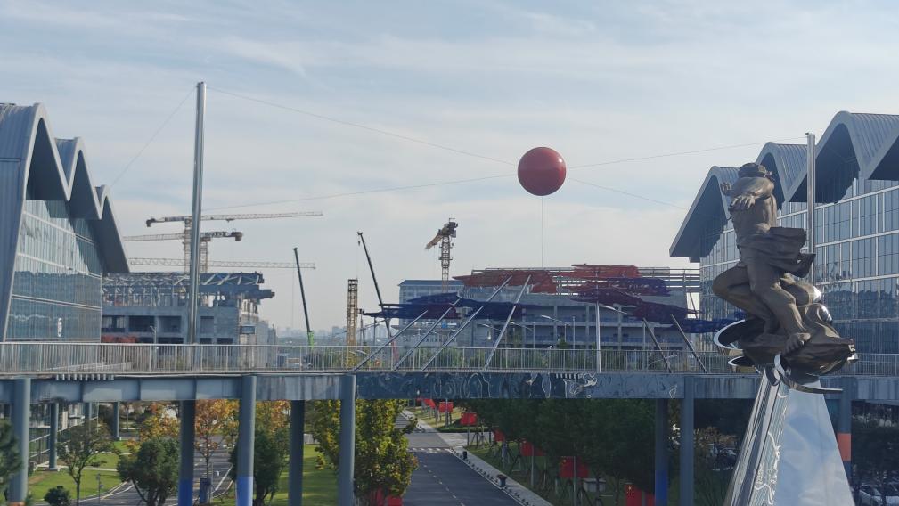 “夸父”园区的夸父雕像。(新华社记者陈诺 摄)